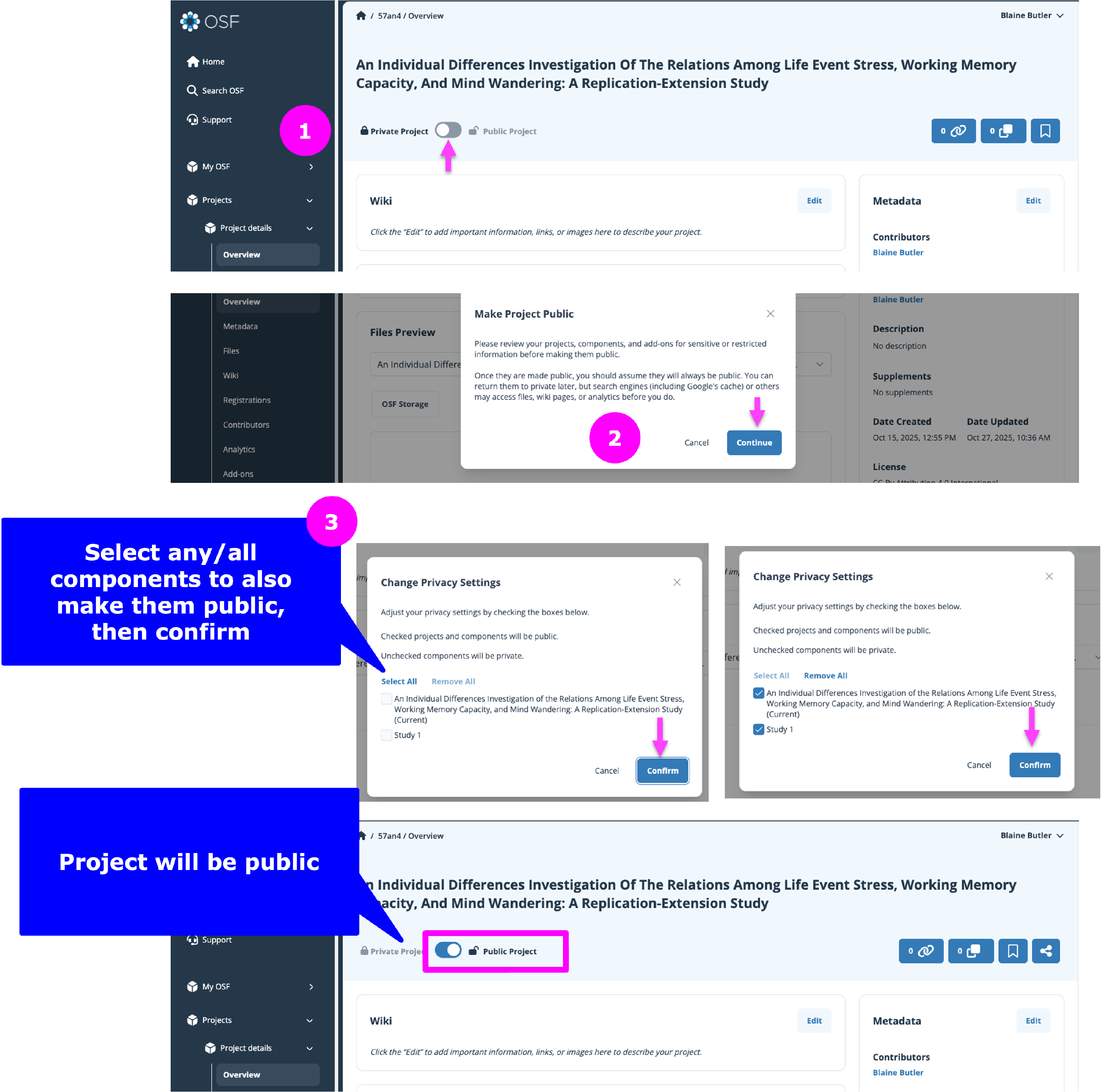 Common Use Cases for OSF Projects: