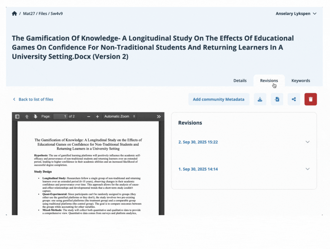 - Preprints support uploading a new file to create a new version (may be subject to moderation)