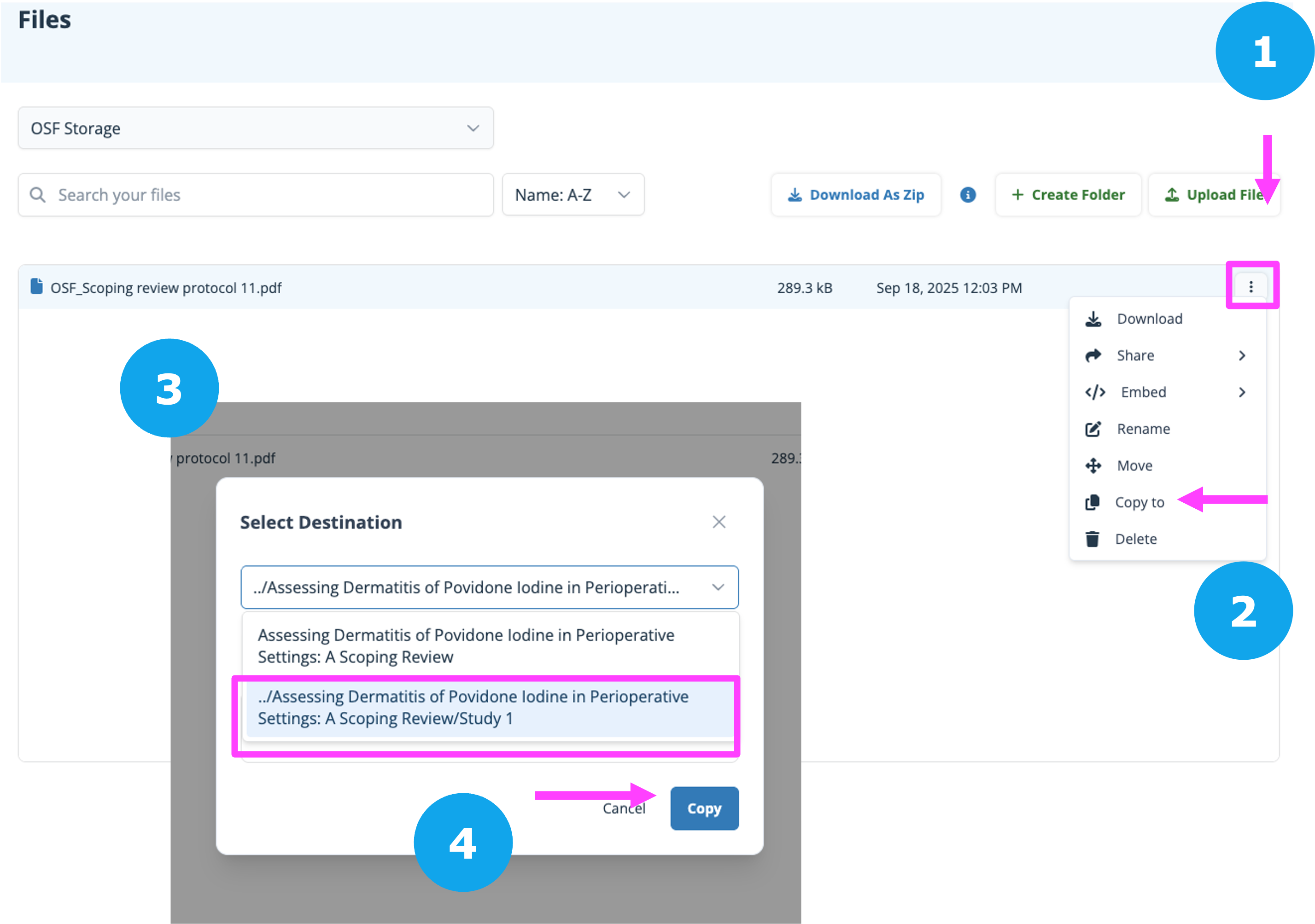 Files must first be uploaded to an OSF project or registration before adding additional metadata. More details about how to [Add Metadata to Files in Projects] in our Metadata guide.