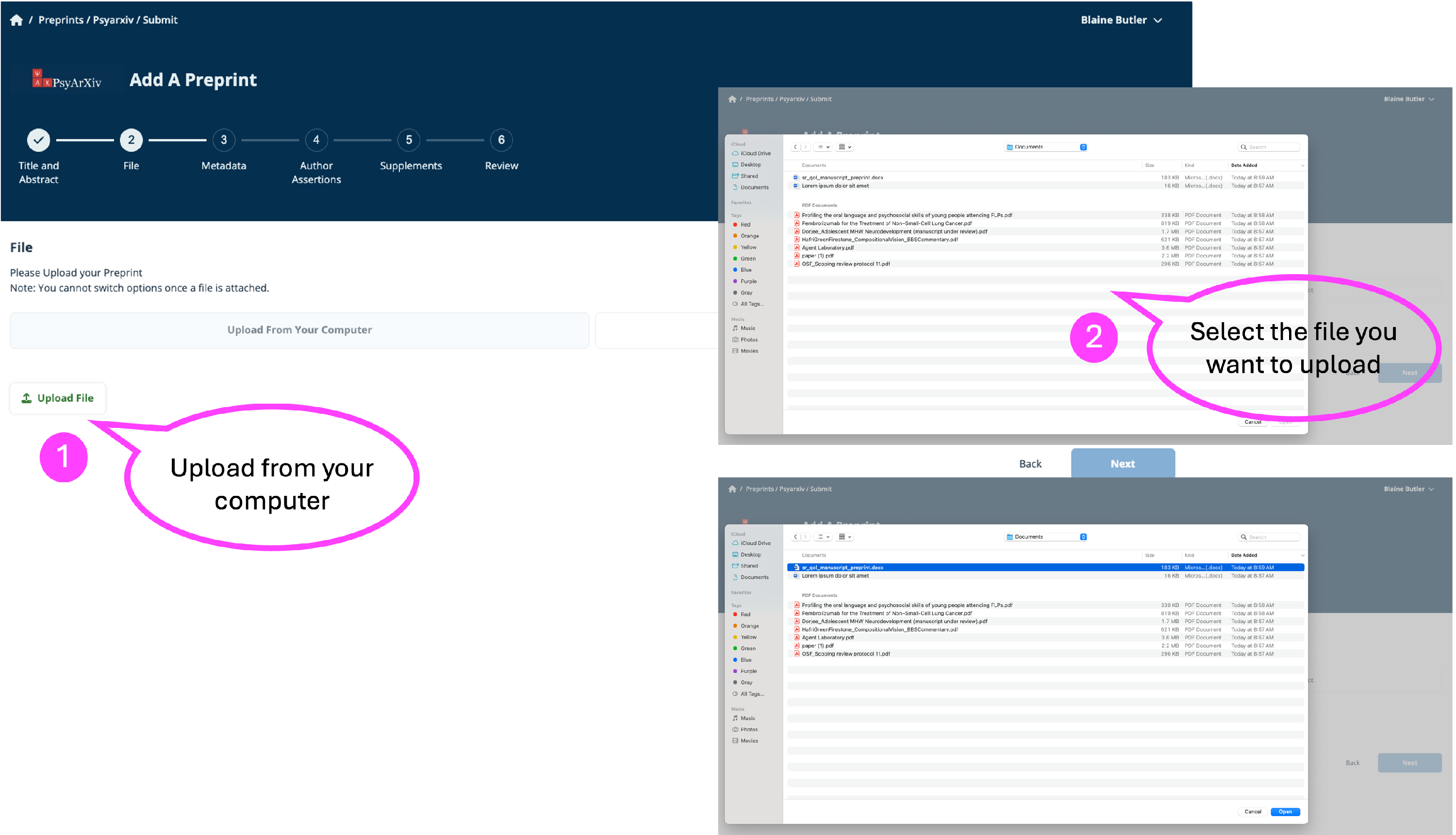 - You should have your preprint in an easily accessible file. It is advisable to use non-proprietary file types like PDF. These document formats are easier to share and reuse, and will render with fewer complications than proprietary filetypes like Microsoft Office filetypes.