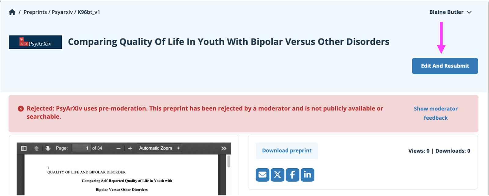 Preprint communities utilize pre-moderation workflows. Pre-moderation communities will review all preprint submissions prior to making them public on their site. Post Moderation communities will allow all preprints to be posted publicly immediately upon submission and the moderation team will review and remove any rejected preprints at a later date. Preprint community moderation teams often work on a volunteer basis, so please allow at least 2 weeks for the moderation teams to review the submission. Want to understand moderation better?