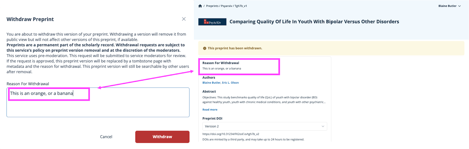 Is there a way to remove a specific version of a preprint? Or prevent it from being cited?