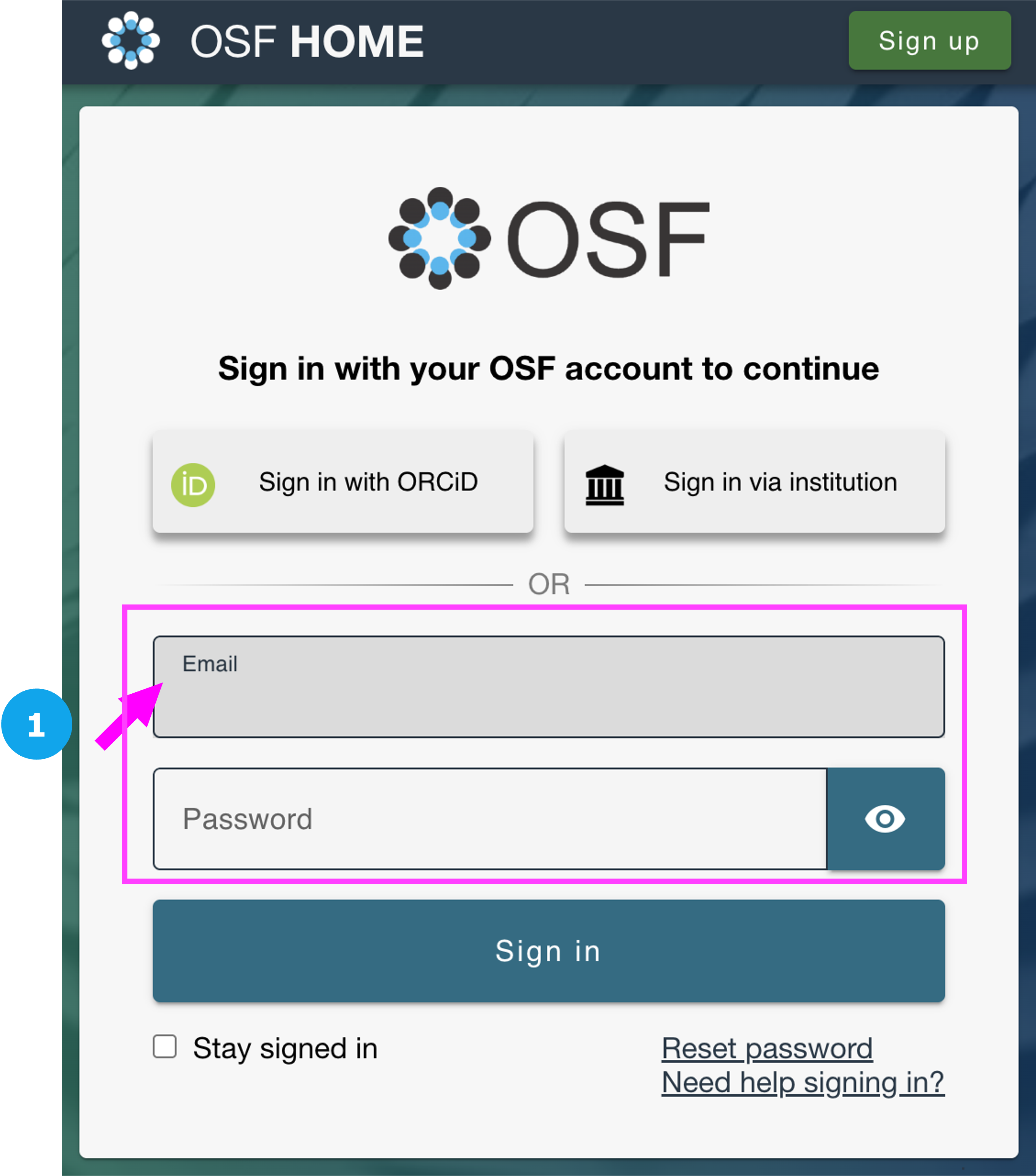Sign in to the OSF
