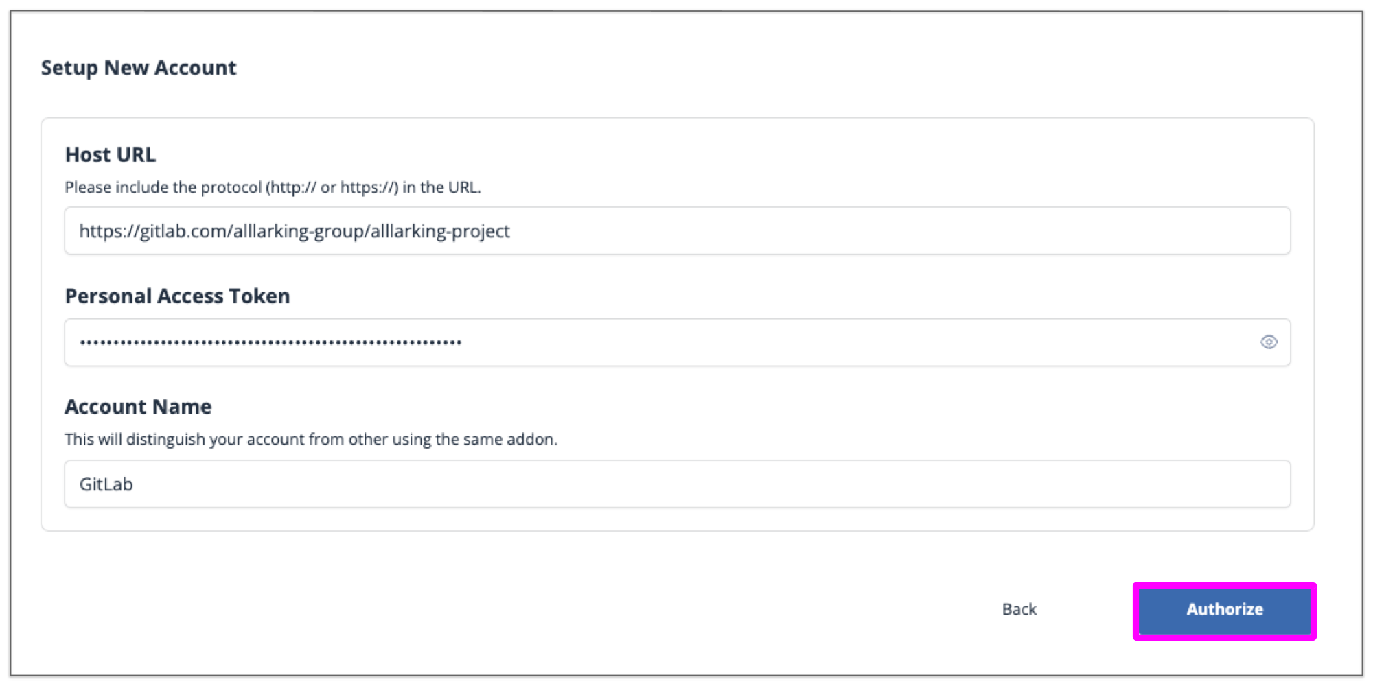 When you are finished entering the host URL, API Token, and name into the designated fields, click Authorize and then click Connect.
