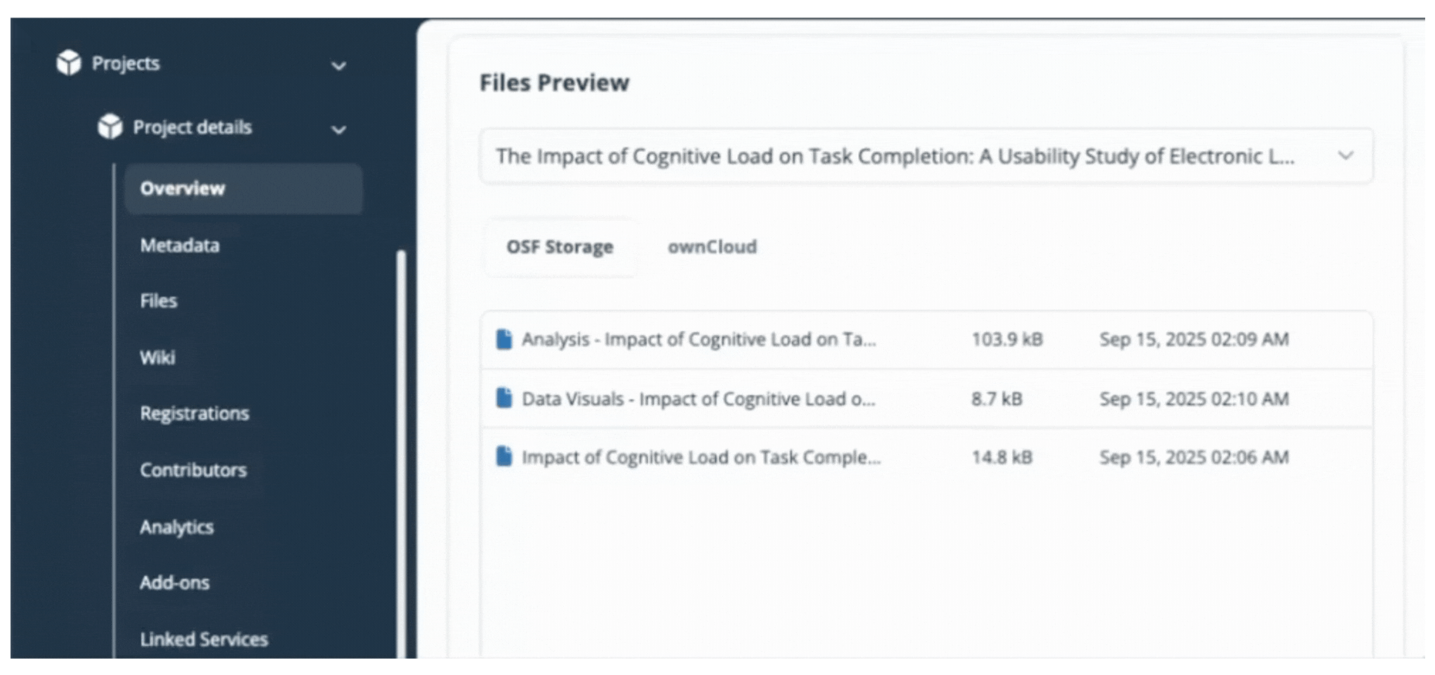 Navigate to or refresh your chosen OSF project page where your protocol will be visible in the Files interface.